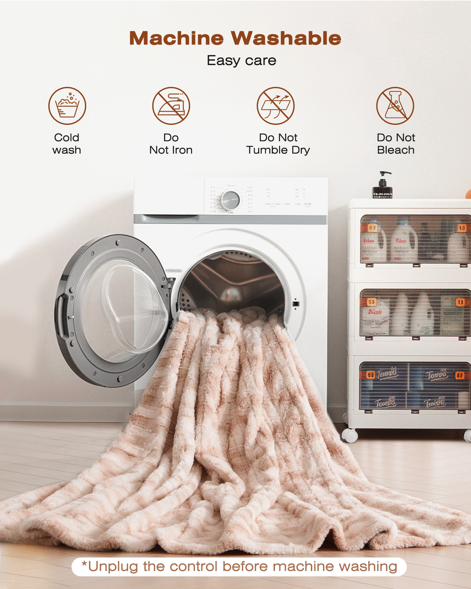 Electric Blanket King Size, 90"x100", Faux Fur (Tan)