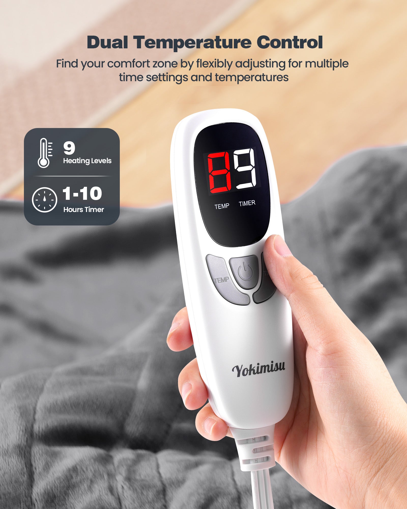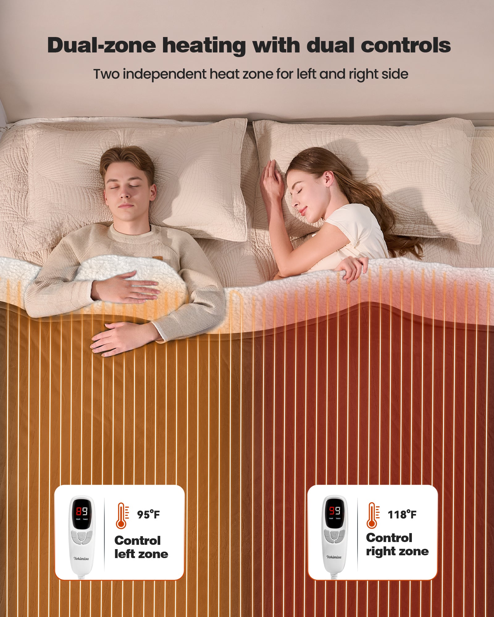 Electric Blanket King Size 100"x90", Flannle to Sherpa (Grey/Camel/Black)