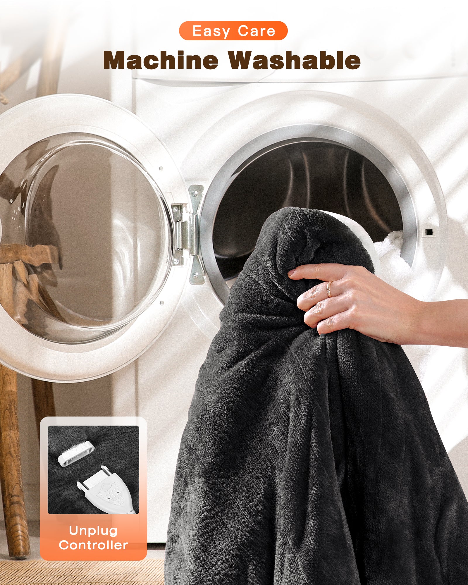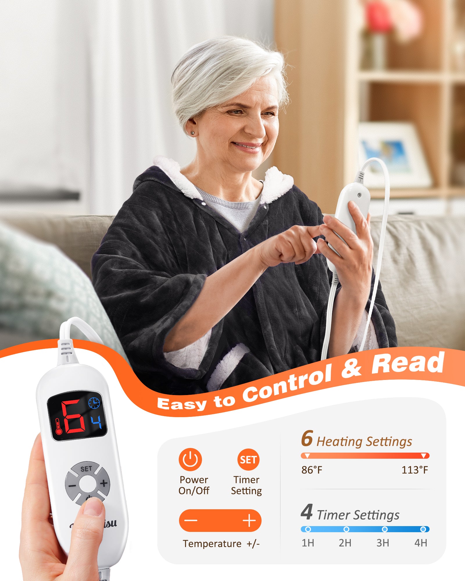 Wearable Heated Hoodie, Electric Blanket 50x70in (Grey/Light Yellow)